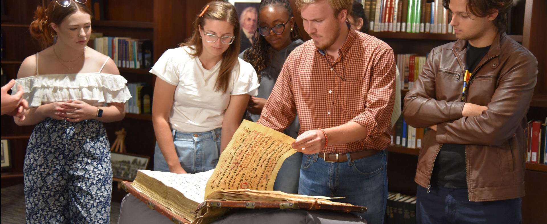 An antiphonal is a choir book with lyrics and melodies for chants performed during Catholic offices, or prayer services held throughout the day. Antiphonals typically include antiphons, or chants performed before the recitation of a psalm, and the psalms themselves. The size and structure of the choir book is designed to allow choirs to easily read the music as well as flip between antiphons and their corresponding psalms. The particular psalm performed on a given day is typically dictated by the church’s calendar of feast and holy days. That is why the index that has been added at the beginning of Pepperdine’s Seville antiphonal reads as a list of saint names or feast days.